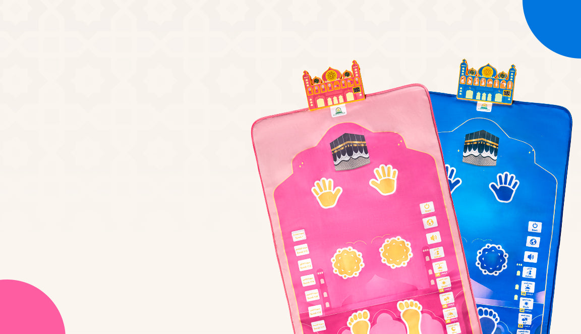 Learning Salat Made Easy - Our smart prayer mat for kids features a fun and engaging design. The markers and LED Salat position indicator help children remember the proper posture for praying. Designed for Interactive Fun - This Muslim prayer rug for kids is packed with features: a Mosque-shaped speaker, LCD Rakat counter, compass, 50 touch-sensitive buttons, and professional Quran reciter. A Comfortable Praying Mat...Regular price $45.99Regular priceUnit price / perSale price $45.99ALMOSTAQIM Educational Prayer Mat - Interactive Prayer Mats for Kids, Built-in Compass, 50 Touch-Sensitive Buttons, LCD Counter, Professional Quran Reciter - 47x27