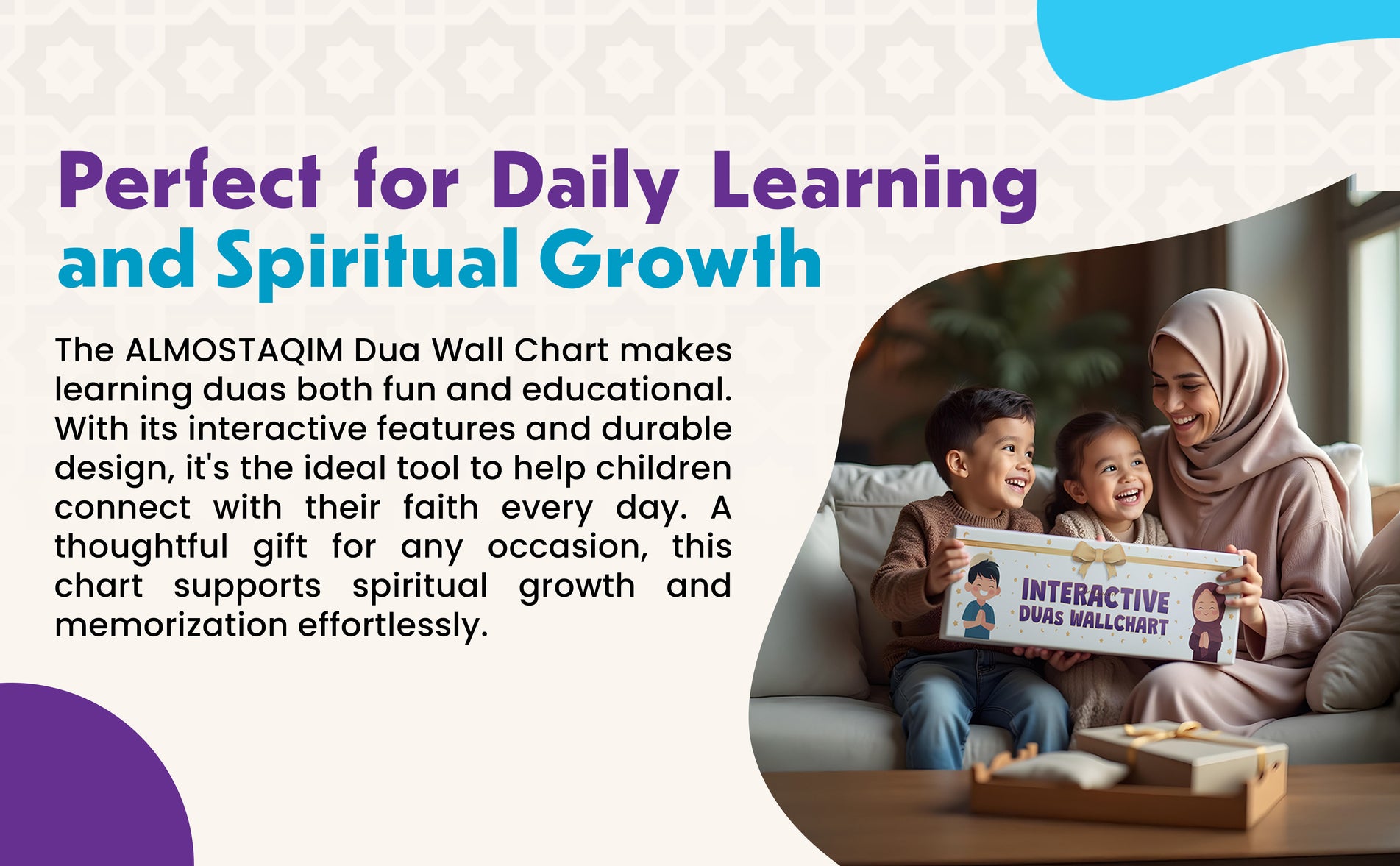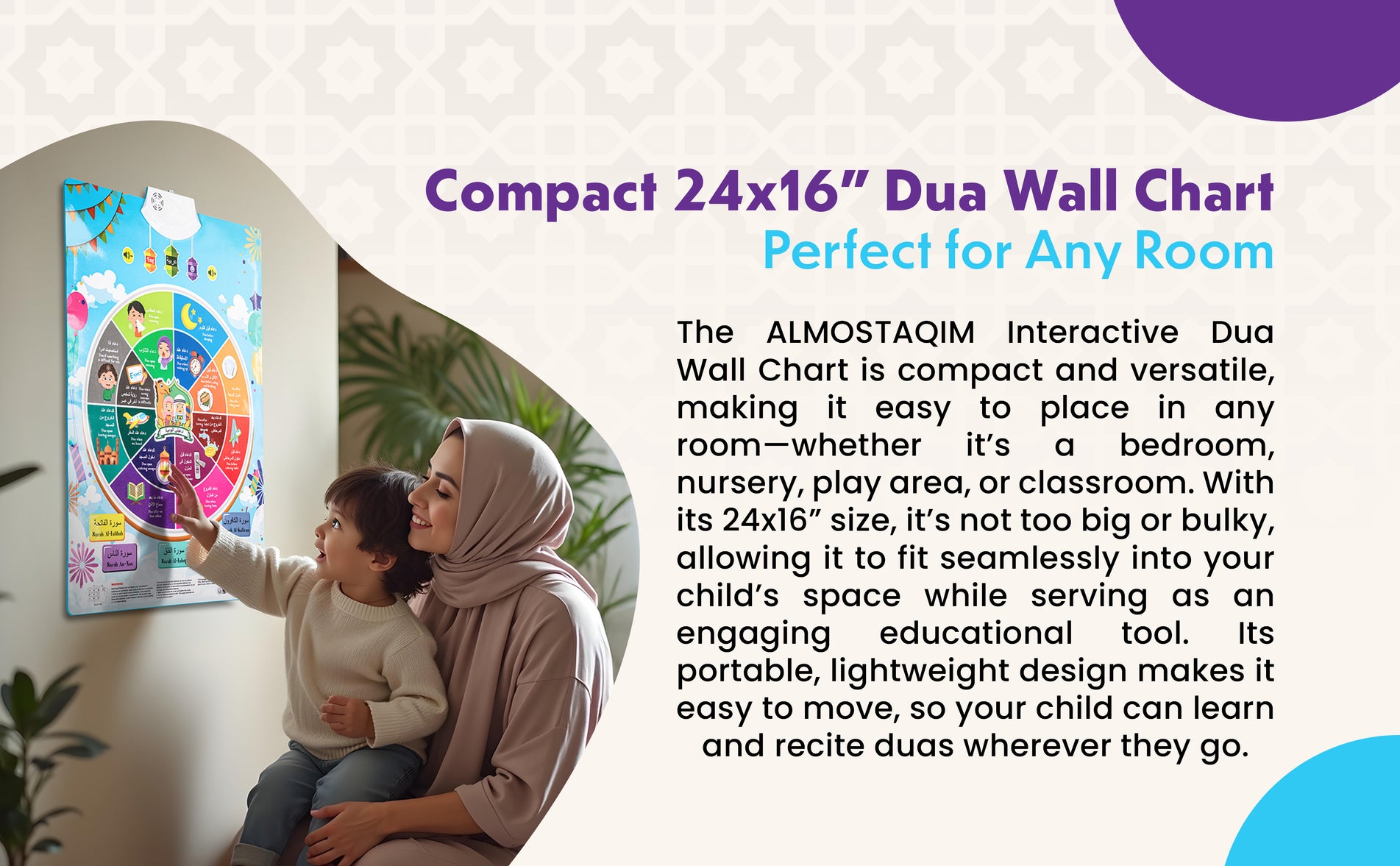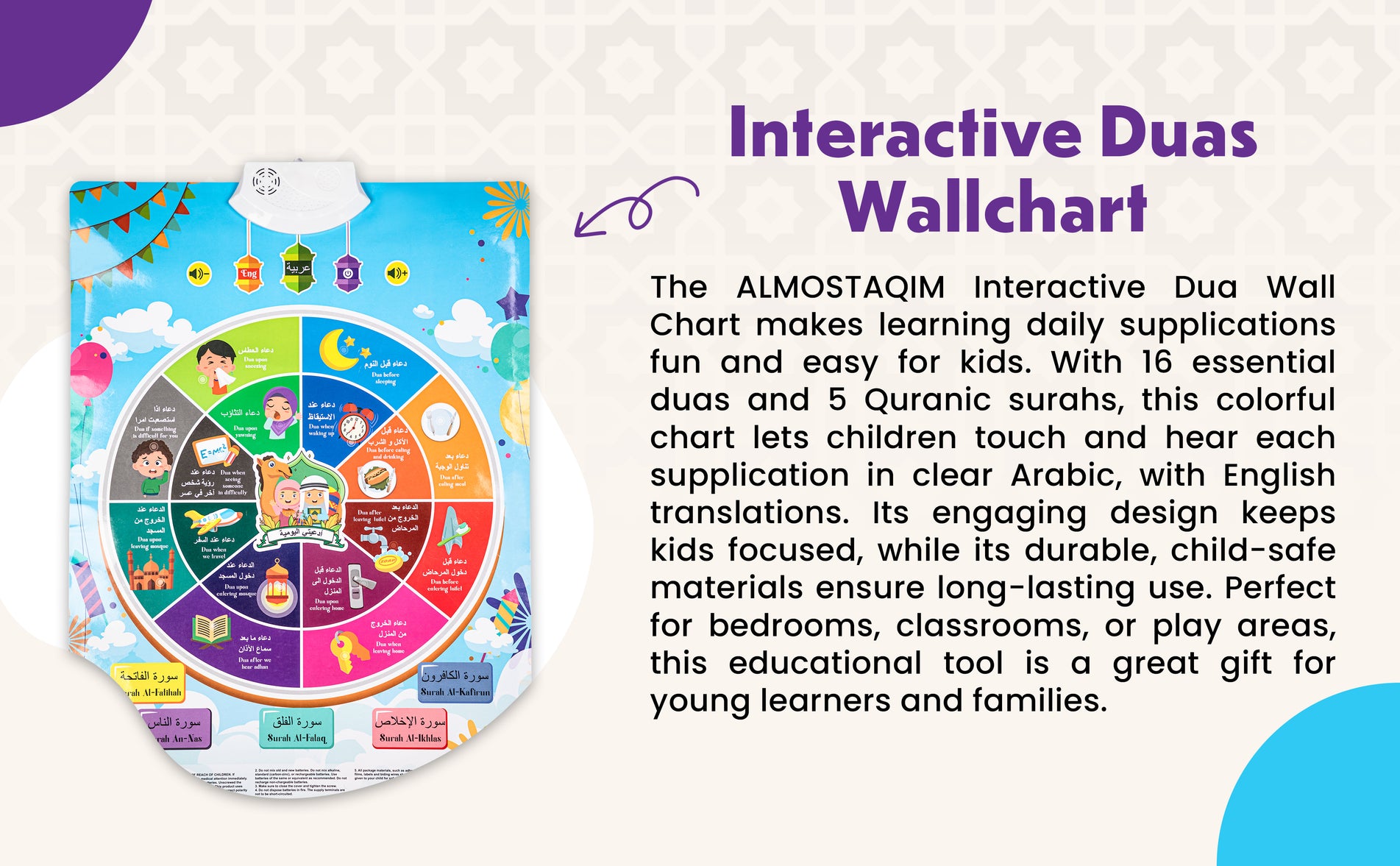Almostaqim Dua Wall Chart - Interactive Islamic Learning Tool for Kids - Visual & Audio Teaching of Duas & Quran Surahs in Arabic, English - Islamic Gifts for Muslims, Children & Families for Ramadan